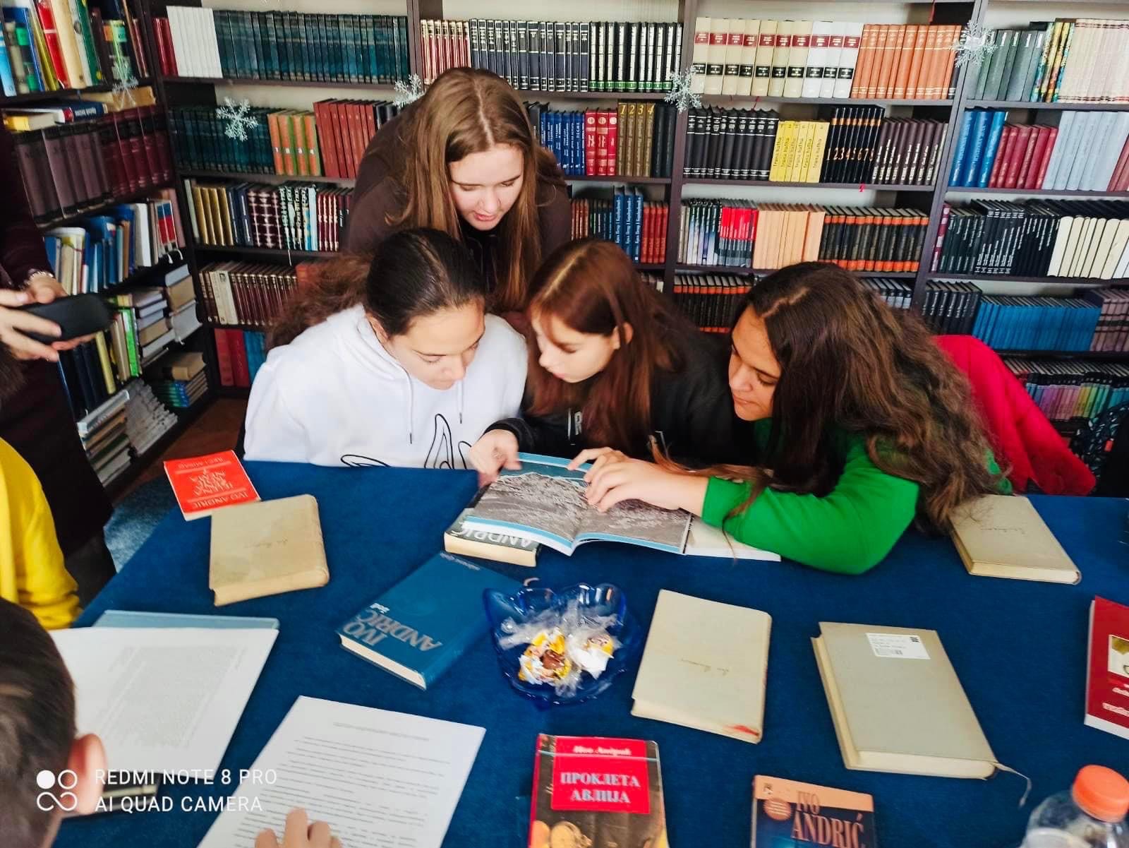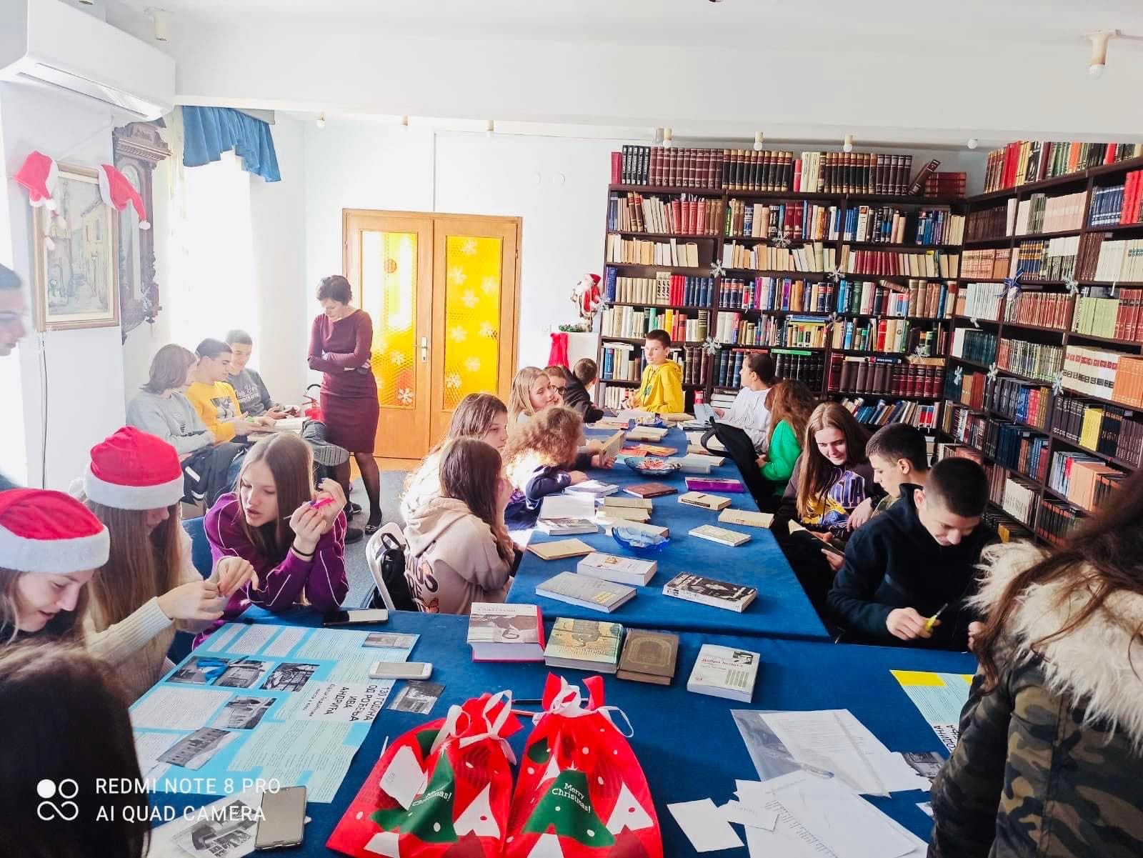 U ponedeljak, 26. decembra 2022. godine, imali smo čast da ugostimo đake OŠ „Ilija Kišić“ iz Zelenike i njihovu nastavnicu gđu Tamaru Komar. Povod je bio literarni konkurs „Umjetnost kao igra“ koji je gđa Komar organizovala za svoje vrijedne učenike u saradnji sa Andrićevom zadužbinom iz Beograda, a u znak obilježavanja 130 godina od rođenja nobelovca Iva Andrića. Čitajući radove, osjetili smo ponos na mlade sugrađane koji su čitanju djela pisca pristupili ozbiljno i otvorenog srca, a onda u istom svijetlu prenijeli svoje utiske na papir. Osjetili smo i žal što svi učesnici ne mogu biti dobitnici nagrada, i vodeći se sitnim nijansama koje odlučuju, izabrali pobjednike.